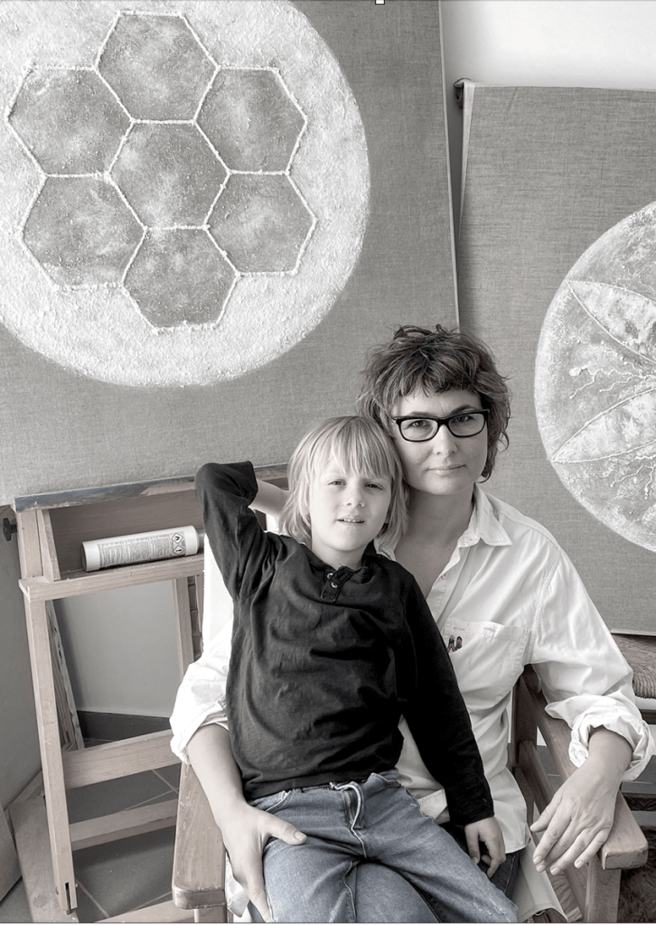 Justyna Borucka was born in Warsaw, Poland. She spent her early years in Milan, Italy, and from 2001 to 2010 she lived, worked and created art in London, UK. She graduated with a BA (Honors) in 2009 from Chelsea College of Art and Design, University of the Arts London. Since 2004, the artist participated in various group and solo exhibitions, with her art being featured in London, Tokyo and Gallery 39-K in Lahore, Pakistan. During this time in her life, Justyna’s art focused on an experimental approach to painting infused by her interest in land art, material manipulation and object making. Justyna later moved her studio to the Greek islands (Skyros, Andros, and Mykonos) where she focused on developing her art practice. Since 2018, Justyna has resided permanently in Paros with her family.