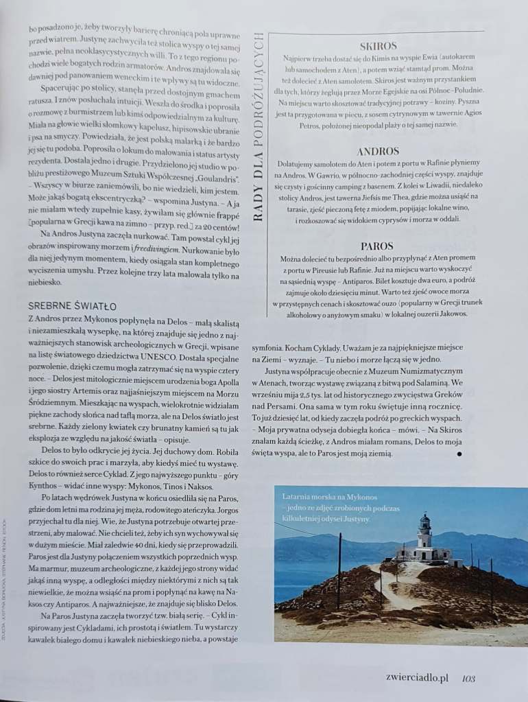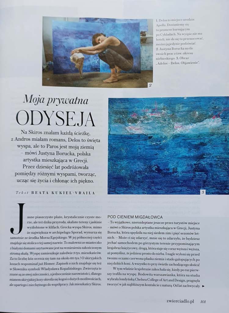 The Painting “Adelos-Delos Revealed” 80x100cm, mixed-media (2015-2017 Private collection, Athens) was showcased in the article “My Private Odyssey” in the Polish magazine “Zwierciadło”.